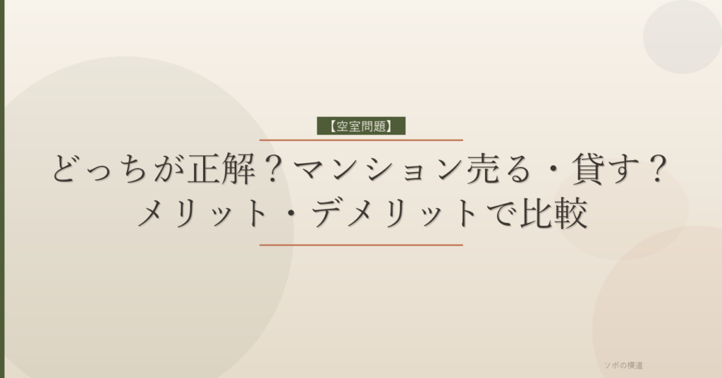 【空室問題】どっちが正解?マンション売る・貸す?メリット・デメリットで比較