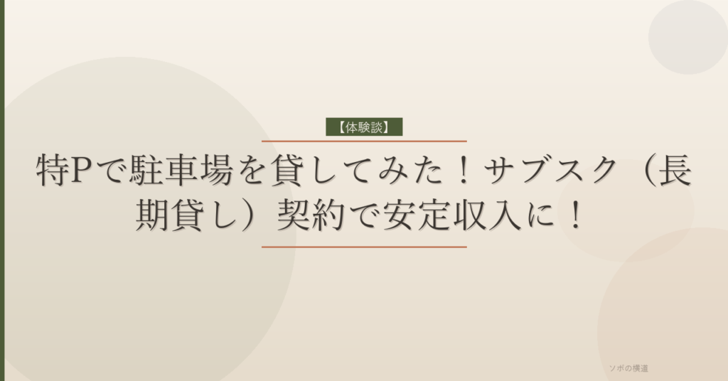 【体験談】特Pで駐車場を貸してみた!サブスク(長期貸し)契約で安定収入に!